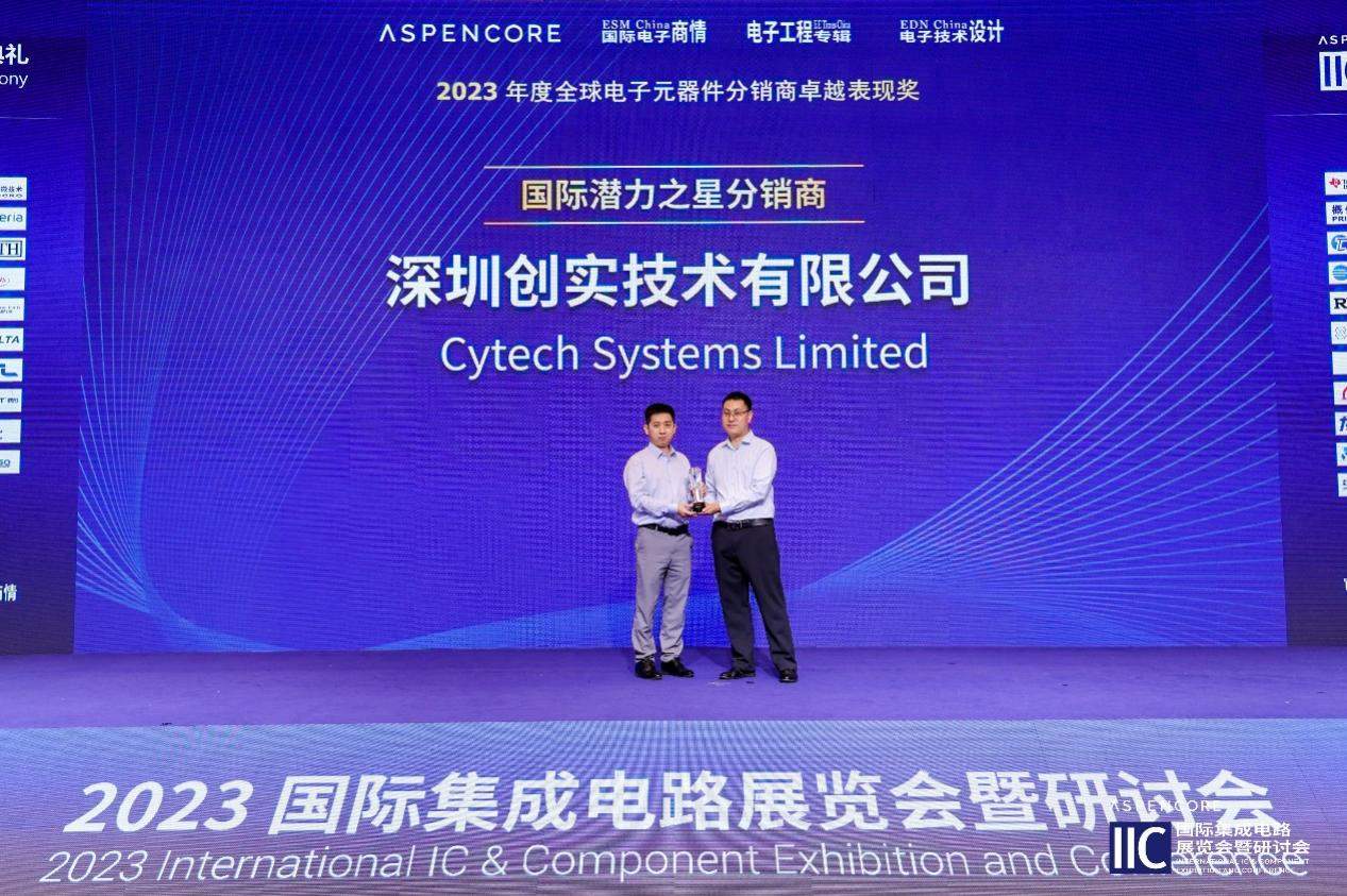11月2-3日,由全球電子行業(yè)知名媒體AspenCore主辦的“2023國(guó)際集成電路展覽會(huì)暨研討會(huì)(IIC深圳)”于深圳大中華喜來(lái)登酒店圓滿(mǎn)落幕。在同期舉行的“2023年全球電子元器件分銷(xiāo)商卓越表現(xiàn)獎(jiǎng)”頒獎(jiǎng)盛典上,業(yè)內(nèi)領(lǐng)先的電子元器件獨(dú)立分銷(xiāo)商深圳創(chuàng)實(shí)技術(shù)有限公司(以下簡(jiǎn)稱(chēng)“創(chuàng)實(shí)技術(shù)”或“Cytech Systems”)榮獲“2023年度全球電子元器件分銷(xiāo)商卓越表現(xiàn)獎(jiǎng)之國(guó)際潛力之星分銷(xiāo)商”!