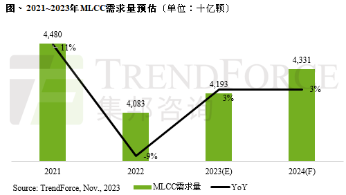 TrendForce集邦咨詢:全球MLCC市場需求進(jìn)入低速成長期,2024年增率預(yù)估僅約3%