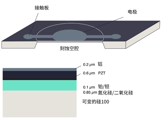 摻鈧氮化鋁 (ScAlN) 是很有前景的PZT替代物,而且不需要引入鉛的使用。由于摻鈧氮化鋁具有較高的擊穿電壓,因此在壓電厚度較薄的情況下也能獲得和PZT類似的機(jī)械位移值。