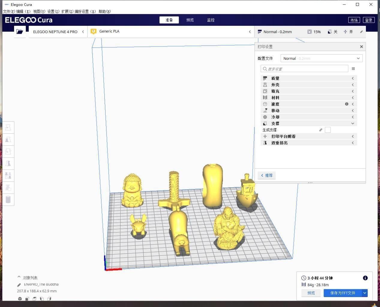 ELEGOO愛樂酷Neptune 4 Pro調(diào)平完畢,下面就是開始三臺機(jī)子正式的打印測試體驗了。在此之前,需要將要打印的模型進(jìn)行切片操作。