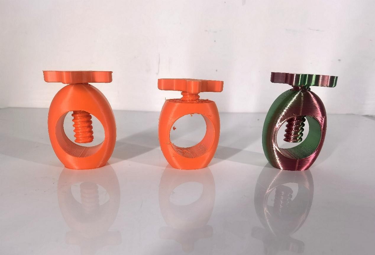 接下來是一個堅果開啟器,同樣是ELEGOO愛樂酷Neptune 4 Pro和創(chuàng)想三維K1打印出了理想效果,拓竹Bambu Lab P1S再度有些缺失。不過從旋轉(zhuǎn)部件來看,兩個部件都能嚴(yán)絲合縫地吻合,可見精度方面表現(xiàn)都比較出色。