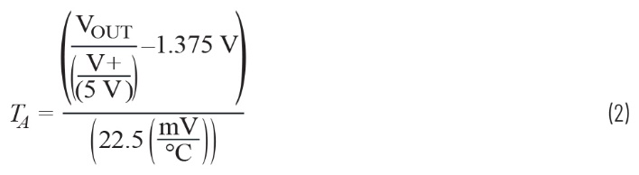 根據(jù)方程1給出的輸出電壓函數(shù),可以提煉出環(huán)境溫度(TA)的方程。