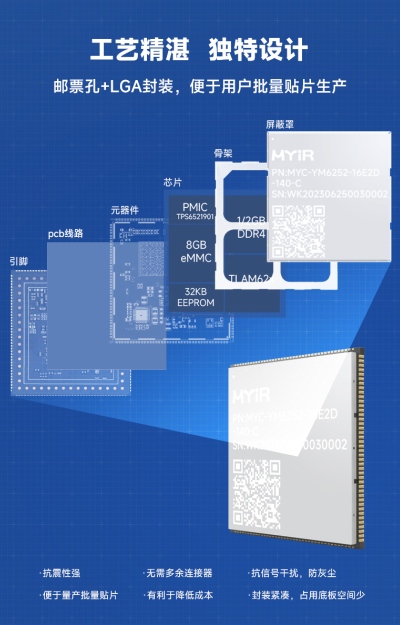 米爾AM62x核心板小巧,設(shè)計(jì)靈活,郵票孔+LGA設(shè)計(jì)