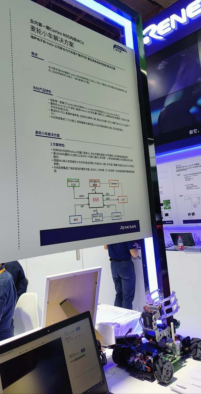 在瑞薩電子的展臺上,RA8無疑是此次亮點(diǎn)。而瑞薩電子也帶來了基于RA8打造的多款demo展示,雖然作為一款新產(chǎn)品,尚未有非常多可公布的客戶實(shí)際導(dǎo)入應(yīng)用案例,但現(xiàn)場展示的多款demo,也向大家展示了這款定位在超高性能的MCU的無限應(yīng)用可能。