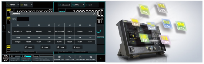 DG900 Pro/800 Pro系列支持序列功能。每通道標(biāo)配16Mpts存儲(chǔ)深度,任意波表長(zhǎng)度高達(dá)32Mpts/ch(opt.),為應(yīng)對(duì)測(cè)試提供足夠容量。同時(shí),DG900 Pro/800 Pro系列具備豐富的調(diào)制功能(AM、FM、PM、ASL、FSK、PSK、PWM調(diào)制功能),滿足通信原理實(shí)驗(yàn)、電機(jī)控制、開關(guān)電源等應(yīng)用場(chǎng)景需求。