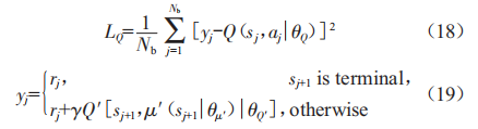 DDPG算法通過(guò)Actor網(wǎng)絡(luò)μ(s|θμ)、目標(biāo)Actor網(wǎng)絡(luò)μ/(s|θμ/)、critic網(wǎng)絡(luò)Q(s,a|θQ)與目標(biāo)critic網(wǎng)絡(luò)Q/(s,a|θQ/)實(shí)現(xiàn)智能體的訓(xùn)練。在訓(xùn)練過(guò)程中,critic網(wǎng)絡(luò)通過(guò)損失函數(shù)LQ更新網(wǎng)絡(luò)參數(shù):