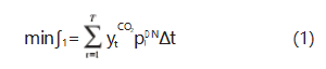 1)碳排放最小。為充分消納光伏,提高充電站的能源自給率與碳減排效益,本文考慮電網(wǎng)動(dòng)態(tài)二氧化碳排放因子,將充電站碳排放最小作為優(yōu)化目標(biāo)之一。