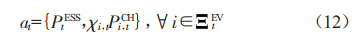 動(dòng)作at是針對(duì)環(huán)境狀態(tài)st所做出的控制決策。本文將儲(chǔ)能充放電功率以及用戶充電樁功率作為控制動(dòng)作,即: