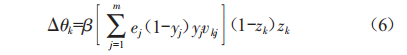 隱藏層節(jié)點的閩值修正如式(6)所示: