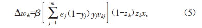 從輸入層節(jié)點至隱藏層節(jié)點的權(quán)值修正如式(5)所示:
