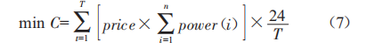 式中:price為每一小時的分時電價;power(i)為各用電設(shè)備功率。