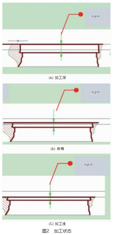 綜上所述,以上四者均會對止口深度造成影響,實際加工過程中四者的變化是同時的,而且刀具是易耗品,氣缸體上平面位置及傾斜度則受本工序刀具磨損、定位系統(tǒng)及其他因素影響,因此四者之間的變化關(guān)系毫無規(guī)律可言,共同變化起來,如果不采用相對先進的加工方法,加工成本會成倍增加,而且加工質(zhì)量也不穩(wěn)定[4]。