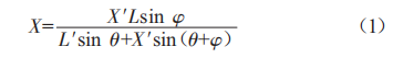設(shè)入射激光、感光器件CMOS與成像透鏡主光軸的夾角分別為θ、P,基準(zhǔn)位置處物光點(diǎn)O、像光點(diǎn)O/到成像透鏡的距離分別為L(zhǎng)、L/,物光點(diǎn)、像光點(diǎn)的位置變化量分別為X、X/,采用幾何解析法求解振動(dòng)測(cè)量模型,依據(jù)公式(1)可以精確求解被測(cè)對(duì)象的振動(dòng)信息。