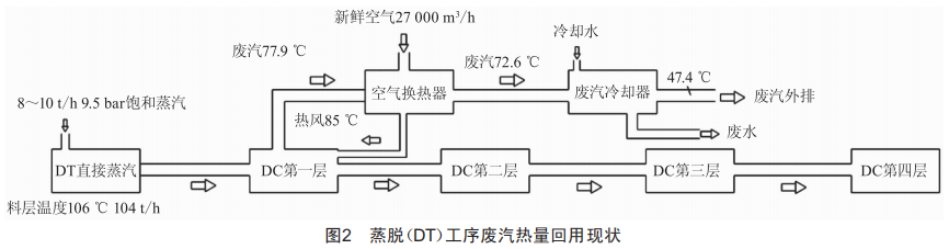 蒸脫(DT)工序的廢汽熱量回用現(xiàn)狀如圖2所示。