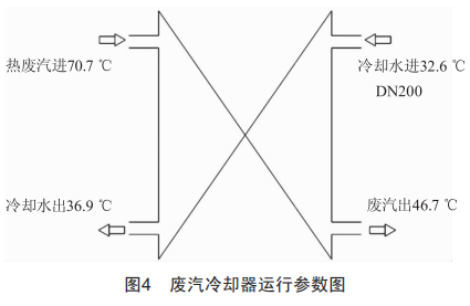 經(jīng)過現(xiàn)場測試,以圖2(改造前)方式運行時,廢汽冷卻器的運行參數(shù)如圖4所示。