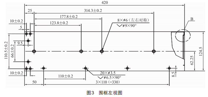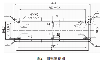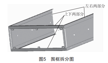 針對小批量的特點,圍框的成型工藝不選擇成本較高的模具沖壓一體成型工藝,而采取“化整為零”的工藝方案,將難成型的結(jié)構(gòu)要素結(jié)合材料特性、加工設(shè)備、焊接工藝和零件精度等拆分在幾個零件上分別折彎實現(xiàn),再拼焊在一起,從而實現(xiàn)圍框的成型。