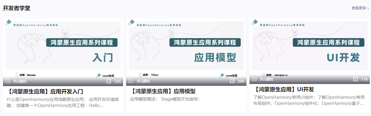 在Laval社區(qū)官方網(wǎng)站上(https://laval.csdn.net/),涵蓋南向設(shè)備芯片適配、OpenHarmony各子系統(tǒng),以及北向應(yīng)用開發(fā)各領(lǐng)域的前沿技術(shù)知識,提供OpenHarmony系統(tǒng)從上到下全鏈條知識分享。其中,“問答功能”為社區(qū)的核心板塊,該板塊為開發(fā)者提供了一個(gè)純凈優(yōu)質(zhì)的互動(dòng)交流空間,一大批OpenHarmony技術(shù)先驅(qū)在此空間里幫助開發(fā)者解決技術(shù)難題。不僅如此,社區(qū)所具備的全面豐富的教學(xué)課程、案例、視頻課堂以及開發(fā)板FAQ技術(shù)精華,能夠全維度激勵(lì)、幫助和陪伴開發(fā)者成長。