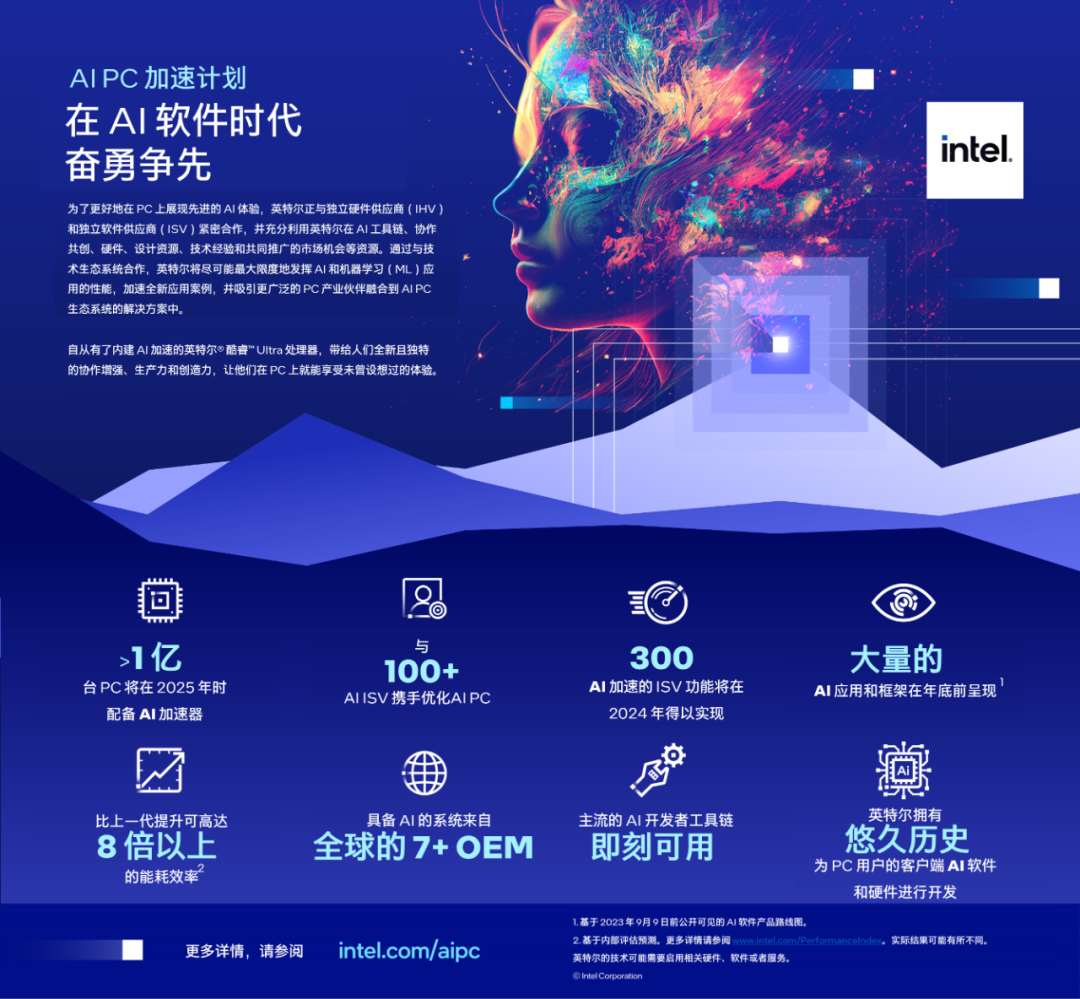 酷睿Ultra系列正是AI PC走向普及的轉(zhuǎn)折點,除了擁有強大的基礎(chǔ)性能,酷睿Ultra系列還首次融入了用于AI加速的NPU模塊,即神經(jīng)網(wǎng)絡(luò)處理單元。這不僅可以讓“大餅AI變聲”這樣的AI應(yīng)用在離線、節(jié)能的狀態(tài)下流暢運行,還將推動AI相關(guān)產(chǎn)業(yè)進一步發(fā)展。預(yù)計在2025年前,全球會出貨超過1億臺AI PC。合作涉及100家ISV合作伙伴,覆蓋300余項AI加速功能,AI應(yīng)用將會得到更大范圍的推廣。