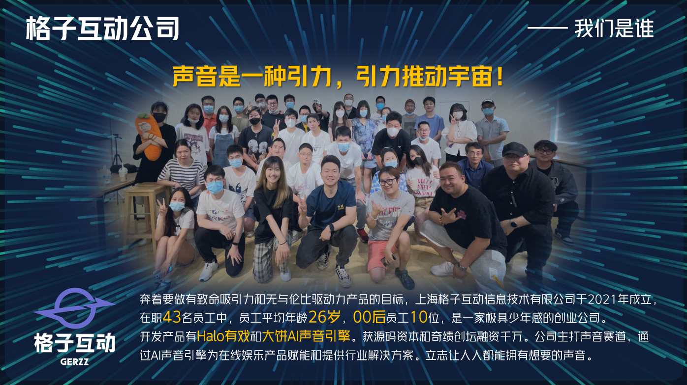 有意思的是,創(chuàng)造了“大餅AI變聲”的格子互動是個成立不到3年的創(chuàng)業(yè)團隊,43名員工平均年齡僅為26歲。正是這群懷揣夢想的年輕人,利用英特爾CPU處理器的加速優(yōu)勢,打造出了國內(nèi)唯一投入商用的實時變聲SDK產(chǎn)品,一站式解決語音合成、語音轉(zhuǎn)化和聲音克隆以及即將推出的口音消除等技術(shù)服務(wù),并提供給普通用戶免費體驗,包括25個聲音標(biāo)簽、上千個好聲音等豐富的AI聲音選擇,讓更多消費者、玩家更快的接觸到AIGC帶來的流暢體驗和便利性。