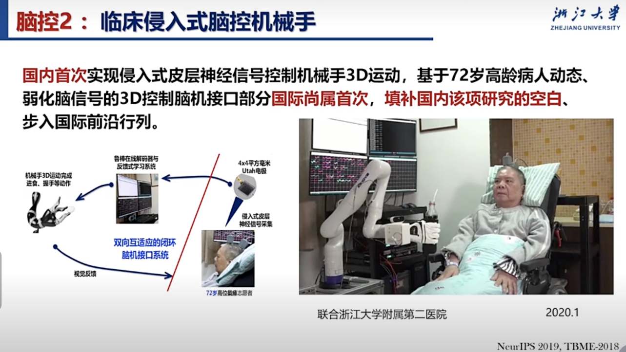 在國內腦機接口研究方面,浙江大學和南湖腦機交叉研究院走在前列。在由芯原股份主辦的第二屆南渡江智慧醫(yī)療與康復產(chǎn)業(yè)高峰論壇上,南湖腦機交叉研究院常務副院長王躍明受邀進行了以“侵入式腦機接口研究”主題的開幕演講。