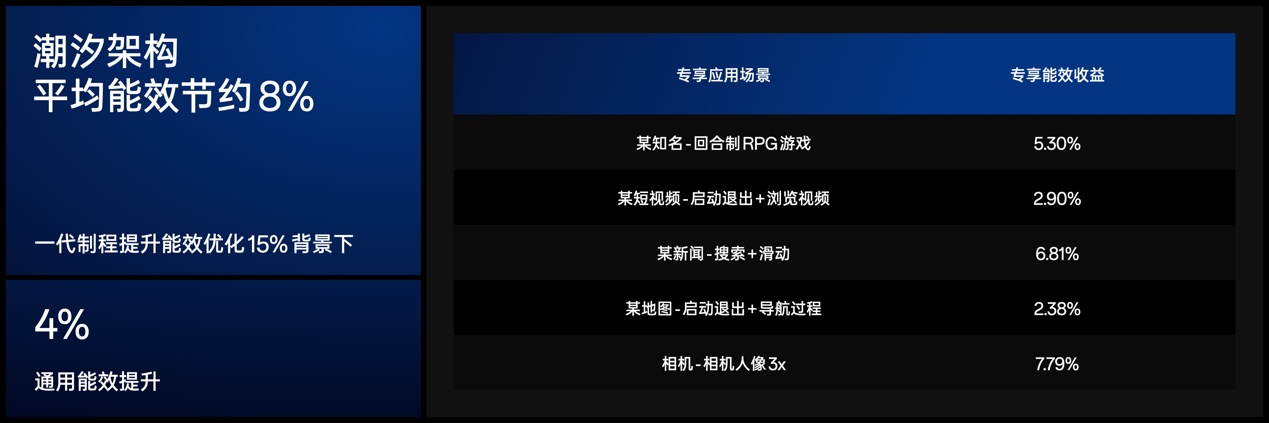 通過與芯片廠商的深度聯(lián)合研發(fā),OPPO將潮汐架構(gòu)深入到傳統(tǒng)手機廠商無法精細化使用的片上緩存系統(tǒng),與芯片廠商共同設(shè)計了緩存分區(qū),CPU/GPU的動態(tài)配比,以及干凈數(shù)據(jù)的快速通道方案。通過潮汐架構(gòu),OPPO首次實現(xiàn)系統(tǒng)級緩存的動態(tài)匹配,實時地根據(jù)計算型任務(wù)與渲染性任務(wù)為CPU和GPU動態(tài)分配系統(tǒng)級緩存資源。通過這一獨有的技術(shù),潮汐架構(gòu)可以實現(xiàn)8%的平均能效收益。