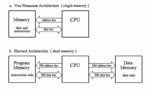 當(dāng)前,雖然最近幾年有一個(gè)叫做存內(nèi)計(jì)算的架構(gòu)非?;馃?,但我們比較熟悉的處理器架構(gòu)基本都是馮諾依曼架構(gòu)(von Neumann architecture)和哈佛架構(gòu)(Harvard architecture)。其中,馮·諾依曼結(jié)構(gòu)的處理器使用同一個(gè)存儲(chǔ)器,經(jīng)由同一個(gè)總線傳輸;哈佛結(jié)構(gòu)是一種將程序指令存儲(chǔ)和數(shù)據(jù)存儲(chǔ)分開的存儲(chǔ)器結(jié)構(gòu)。