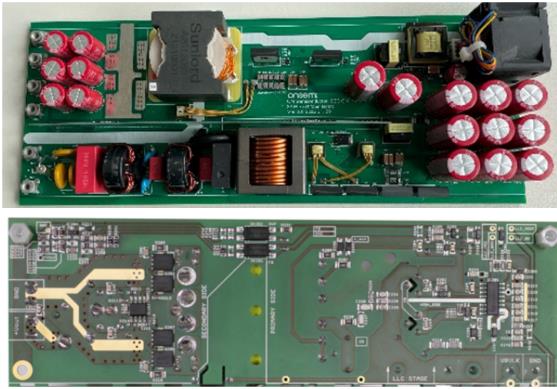本方案SiC MOS器件支持高頻PFC,并采用先進(jìn)的圖騰柱無橋PFC控制器,以及工作頻率高達(dá)150KHz的高頻LLC級(jí),在輸出級(jí)上通過高效率全橋同步整流,實(shí)現(xiàn)高功率密度。