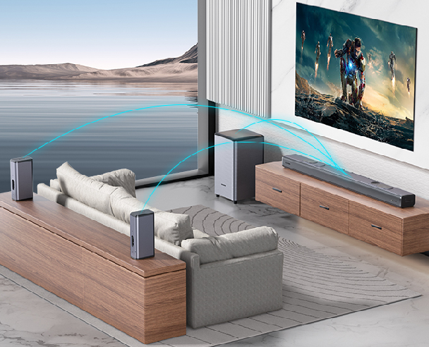 瀚宏智能家庭影院回音壁音響采用7.1.4杜比全景聲真無線全新設(shè)計,無論是在看電影、打游戲還是聽音樂都能享受逼真且沉浸式全景環(huán)繞體驗(yàn)。支持藍(lán)牙連接,USB無損播放,電影、音樂、新聞模式任意切換,帶給你極致便捷的科技體驗(yàn)感。