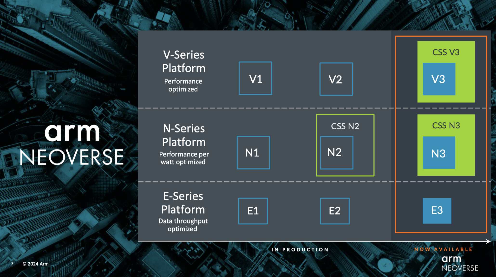 隨著通用人工智能的發(fā)展,數(shù)據(jù)中心的計算需求逐步提高。針對多模態(tài)數(shù)據(jù)、大模型的推理和訓練需要更高的算力支持,而隨著算力提升與之而來的還需更關注在功耗方面的優(yōu)化。對于頭部云計算和服務廠商而言,針對專門用例提高每瓦性能變得至關重要。而這就需要其在CPU的IP微架構層面就開始著手優(yōu)化設計,且需要極高的靈活性和豐厚的軟件生態(tài)能力。Arm Neoverse系列正是迎合了這部分技術發(fā)展趨勢,自推出至今,已經獲得了諸多頭部云服務廠商的認可,基于Neoverse推出的定制服務器CPU也幫助云服務客戶獲得了更具效益的計算服務。而在近日,Arm又推出了其全新的新一代Arm Neoverse N3和Arm Neoverse V3,并且同步提供了Arm Neoverse CSS N3和Arm Neoverse CSS V3;這也是Arm首次提供基于高性能的Neoverse V系列的計算子系統(tǒng)。