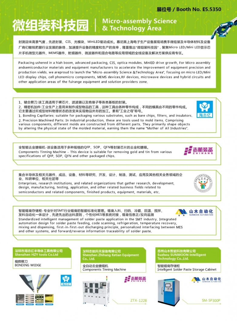 2024慕尼黑上海電子生產(chǎn)設(shè)備展攜手業(yè)內(nèi)優(yōu)質(zhì)的SMT、微組裝及半導(dǎo)體設(shè)備材料廠(chǎng)商,隆重推出特色展區(qū)-SMT智慧工廠(chǎng)核心展示區(qū)和微組裝科技園。敏銳把握行業(yè)發(fā)展脈絡(luò),致力于以產(chǎn)業(yè)智能化升級(jí)為導(dǎo)向,打造智能制造發(fā)展新趨勢(shì)。