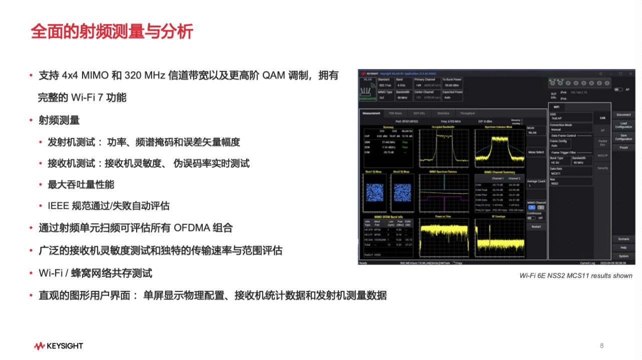 對(duì)于設(shè)備廠商而言,要開(kāi)發(fā)出符合Wi-Fi7標(biāo)準(zhǔn)且能夠滿足以上全部新特性的設(shè)備,在無(wú)線射頻的測(cè)試項(xiàng)目和測(cè)試條件上,都比Wi-Fi6設(shè)備要復(fù)雜得多。