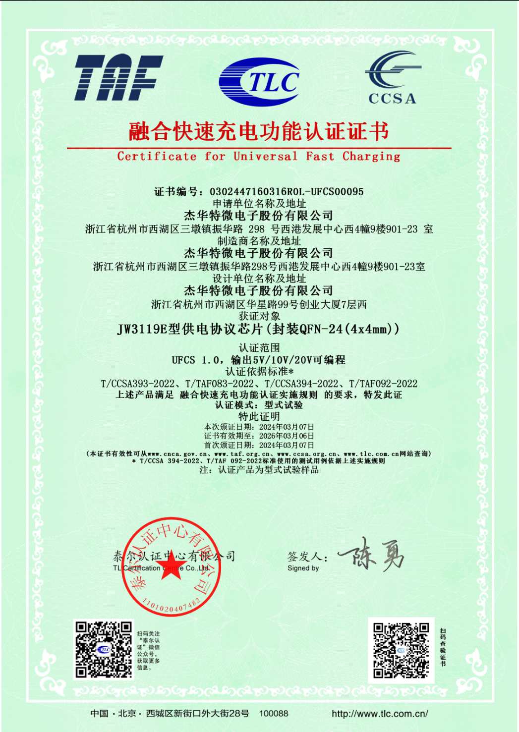 芯聞速遞丨杰華特JW3119E通過UFCS認證,助力融合快充發(fā)展