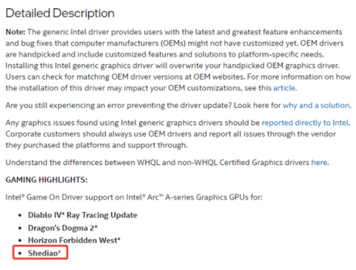 3月20日,英特爾銳炫放出了31.0.101.5379版本的銳炫獨(dú)立顯卡驅(qū)動(dòng),首發(fā)支持了《射雕》這款游戲,這也是此前英特爾所承諾的在游戲上市前就提前布局支持,上線即能順暢游玩,專注為玩家提供更優(yōu)的驅(qū)動(dòng)和游戲體驗(yàn)。