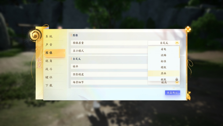畫面設(shè)置方面,我們選擇精致檔位的特效,選擇1080P和2K分辨率進(jìn)行實(shí)際游戲,作為網(wǎng)易出品的MMO游戲,《射雕》的游戲內(nèi)可探索的世界非常大,游戲畫面非常精致,非常多游戲場(chǎng)景都是堪稱壁紙級(jí)別的美景。