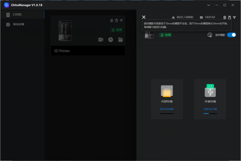 在赤兔軟件上,還支持管理愛樂酷?星4U打印機(jī),支持WiFi集群打印,可使??臺電腦控制一臺打印機(jī),甚至多臺打印機(jī)同時(shí)開始打印。不?插USB也可以傳輸?件,兼容2.4G和5G?絡(luò)。