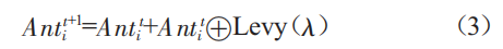 式中:Antit、Ant+1分別為第i只螞蟻第t次、第t+1次所在位置;λ為Levy行走的步長。