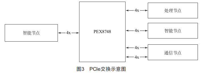 智能處理模塊中PEX8748配置多個4X通道,用于連接通用處理節(jié)點、智能計算節(jié)點和通信節(jié)點,如圖3所示。
