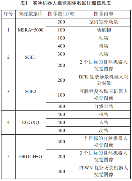 實(shí)驗(yàn)數(shù)據(jù)來(lái)自五個(gè)公共機(jī)器人視覺(jué)圖像數(shù)據(jù)庫(kù),具體如表1所示。