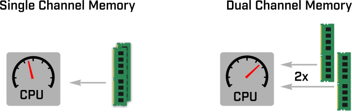 圖 1. 雙通道內(nèi)存比單通道配置具有更高的性能