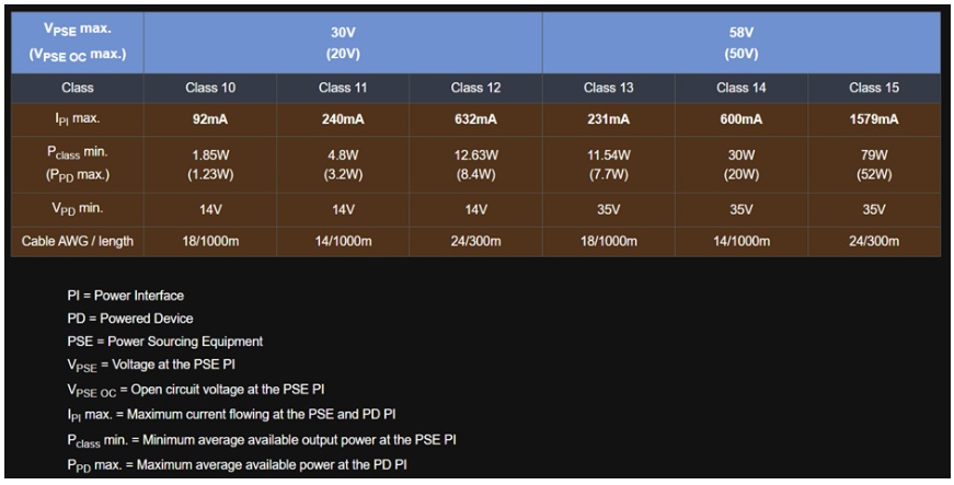 表1:10Base-T1L和SPoE的IEEE 802.3 cg功率等級(jí)(來源:EPCOS / TDK)