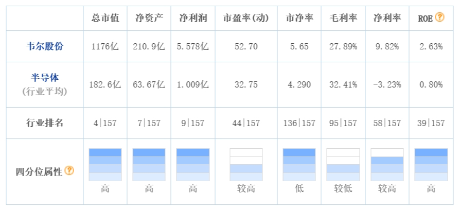 表二、東方財(cái)富網(wǎng)提供的一家企業(yè)與157家半導(dǎo)體領(lǐng)域內(nèi)A股上市公司的各項(xiàng)綜合/平均指標(biāo)對(duì)比表