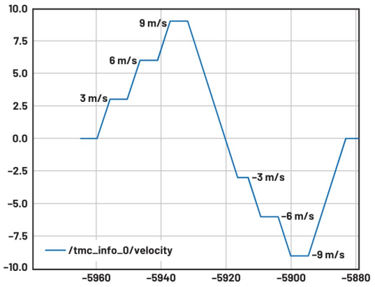 為了驗證電機是否已移動,圖8顯示了來自TMC (/tmc_info_0)的實際轉(zhuǎn)速反饋圖。