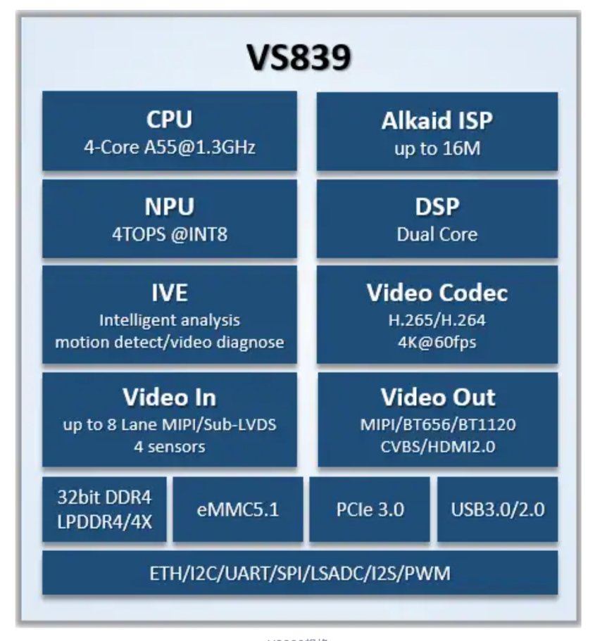 據(jù)悉,VS839中的瑤光ISP是為旌科技自主研發(fā),支持16路的傳感器接入,集成了WDR、降噪、防抖和強(qiáng)光抑制等功能,能夠根據(jù)機(jī)器視覺(jué)和人眼視覺(jué)輸出不同的運(yùn)算結(jié)果。