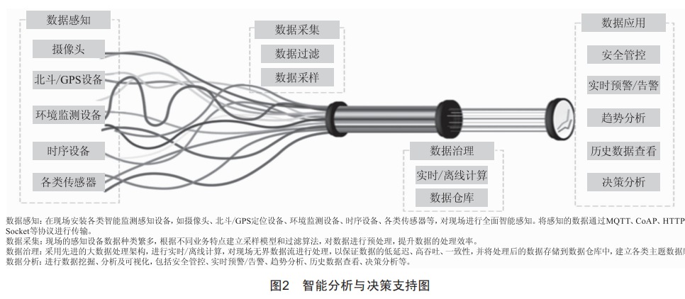 4)數(shù)據(jù)分析:進(jìn)行數(shù)據(jù)挖掘 、分析及可視化 ,包 括安全管控、實(shí)時(shí)預(yù)警/告警、趨勢(shì)分析、歷史數(shù)據(jù)查 看、決策分析等[3]。