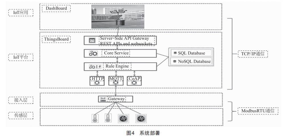 2)智能分析與決策支持:通過(guò)結(jié)合人工智能技 術(shù) ,實(shí)現(xiàn)智能化的數(shù)據(jù)分析和決策支持功能。筆者將能化改造 ,首先必須選擇一個(gè)物聯(lián)網(wǎng)平臺(tái)。在這個(gè)案 例中 ,采用開源的ThingsBoard作為項(xiàng) 目 的IoT平臺(tái) , ThingsBoard按照單體方式部署 ?;赥hingsBoard開 源系統(tǒng)進(jìn)行二次開發(fā) , 以滿足環(huán)境監(jiān)測(cè)的需求 , 基 于大數(shù)據(jù)與人工智能算法 ,接入HttP、MQTT、CoAP、 OPC—UA、Modbus、BLE、CAN等協(xié)議 [2] , 滿足多樣化 傳感器數(shù)據(jù)的融合與分析需求 , 實(shí)現(xiàn)智能化的數(shù)據(jù) 分析和決策支持 ,保證數(shù)據(jù)的實(shí)時(shí)性和準(zhǔn)確性。