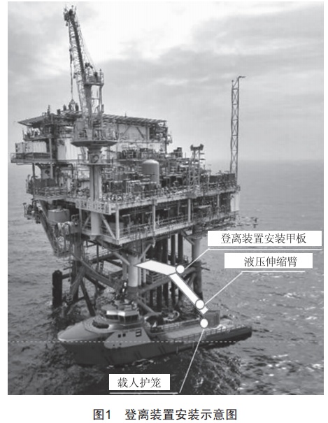 針對海洋平臺的結(jié)構(gòu)特點,為取代傳統(tǒng)的鋼索吊桿登離方式'筆者將采用更為先進的液壓或氣動方式實現(xiàn)響應速度更快的登離平臺。由于海洋平臺氣源主要來自空壓機,其容量只能滿足生產(chǎn)工藝需要,如要驅(qū)動登離裝置,需要保障連續(xù)且大量的氣源,海洋平臺是無法具備此條件的。所以,未來新型的登離平臺方式,必然是采用液壓系統(tǒng)。