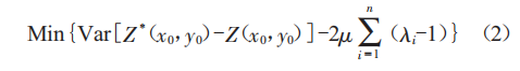 在式(1)中,Z*(x0,y0)要求是無偏估計同時在無偏條件下使估計方差達(dá)到最小,即滿足下式: