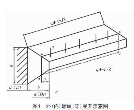 1)把螺紋(牙)展開視為懸臂梁,按懸臂梁進行強度校核,缺乏嚴密的理論依據(jù)和試驗結(jié)果支撐。