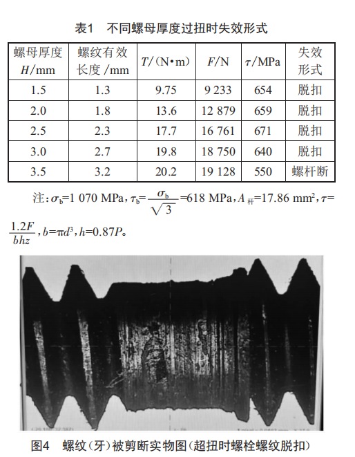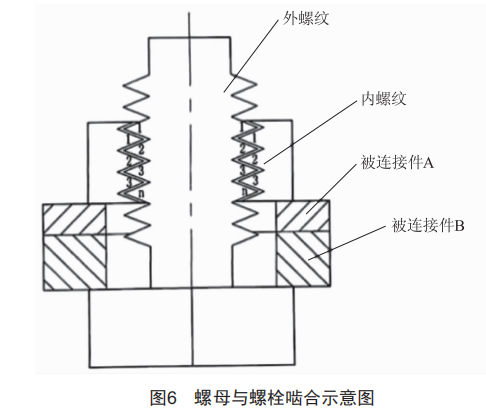2)塑性變形階段:旋擰螺栓或螺母,螺栓桿部繼續(xù)受拉,螺紋(牙)切應(yīng)力達到屈服極限,外螺紋在內(nèi)螺紋作用下產(chǎn)生塑性剪切變形。