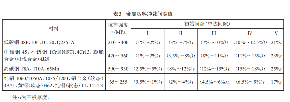 螺栓與螺母性能等級按GB/T 3098.2—2015搭配,螺母的性能級別與螺栓性能級別一樣,如8級螺母配8.8級螺栓,螺紋公差一般按GB197 6H/6h配合[9]。6H/6h公差間隙與根部厚度0.75P比值(表2)與GB/T 16743—2010《沖裁間隙》標(biāo)準(zhǔn)中金屬板料沖裁單邊間隙值(表3、圖7)進行比較,取墊圈T在590~930 Mpa這擋。